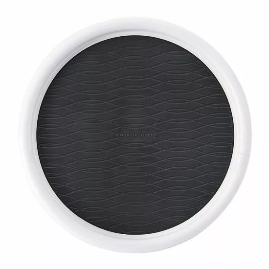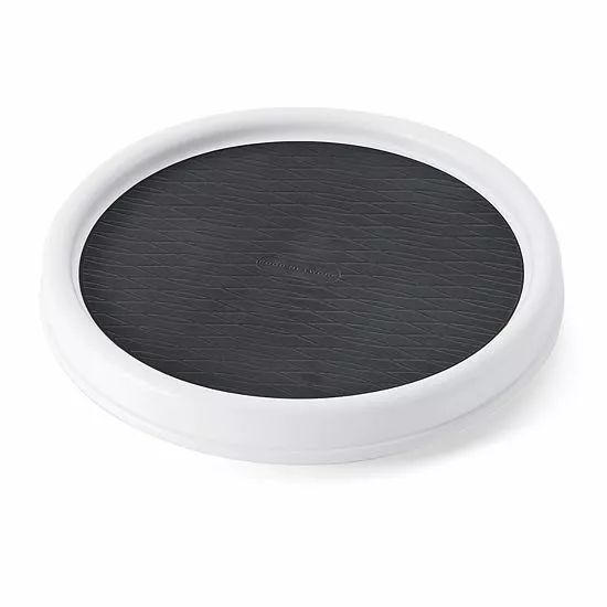 - Gray nonskid liner keeps items in place while rotating