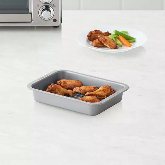 The Food Network™ Toaster Oven Cake Pan & Rack Set is a game-changer! The pan bakes evenly, and the rack is sturdy. Perfect for small-batch baking. Highly recommend!